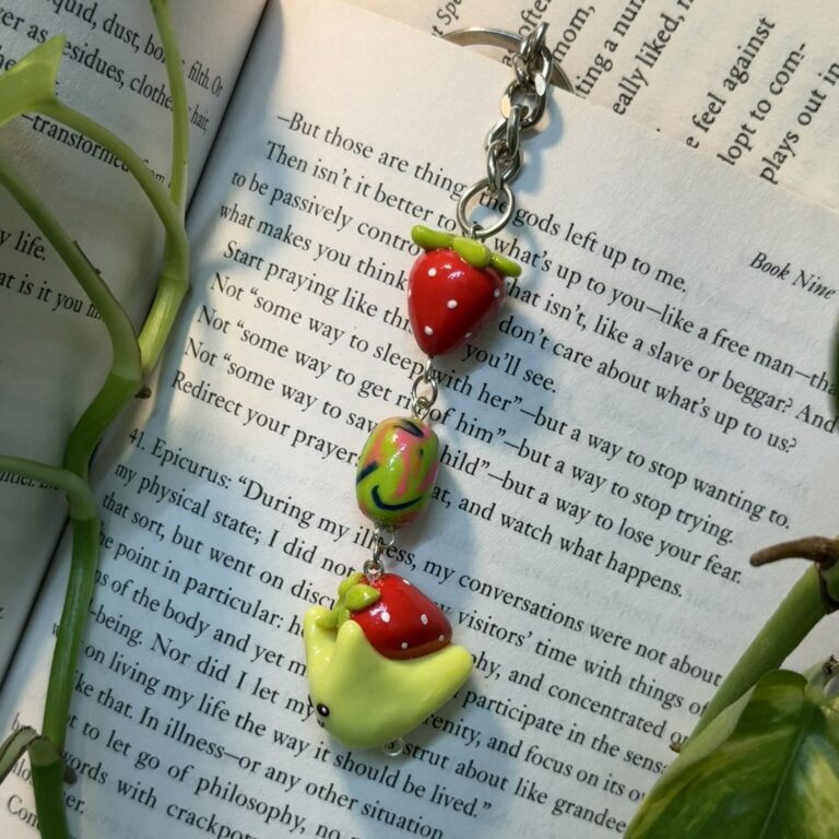 Handmade polymer clay keychains which are all about cute designs and vibrant colours. Each charm is carefully made by hand, then finished with a clear varnish for a smooth and glossy look.