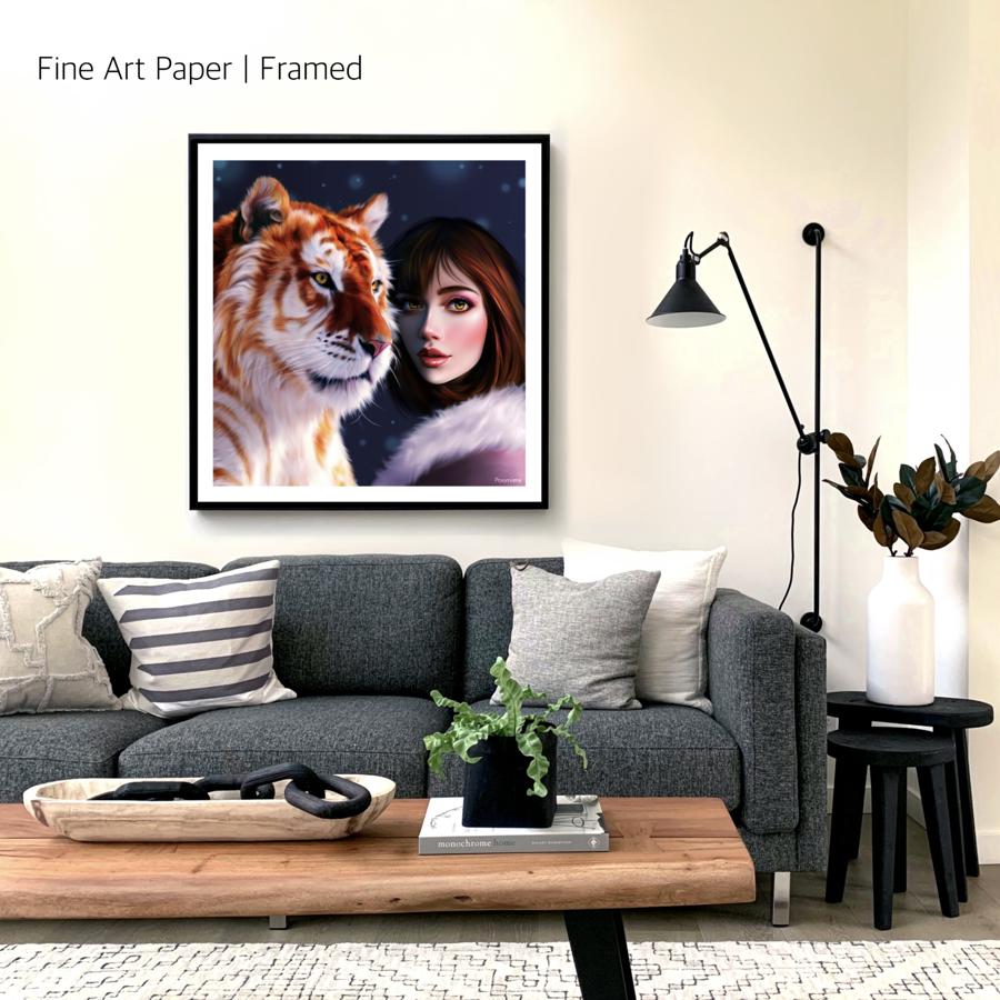 Rolled and ships inside a safe hard tube. When you want a specific framing for your art prints that is not available with us, then you can buy without frame.