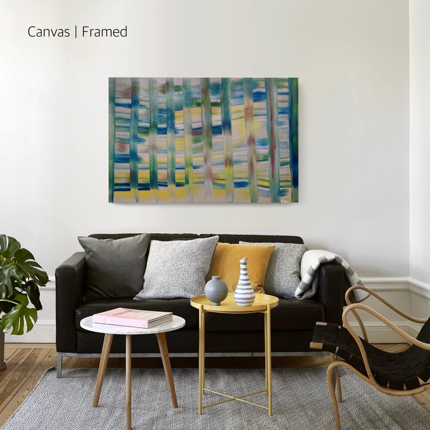 This painting exhibits the exploration of different colors, scrutinizing values changing across the entire canvas. This painting is expressing a wide variety of emotions and has lines composition. The striking stipes evincing the beautiful work of brush strokes of brilliant cool colors directing the gaze across the whole canvas. This painting expresses a bulk of different reactions and explore a varied range of associations viewers have with the earthy and cool colors.